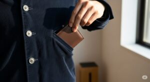 二つ折り財布の最大のメリットは、その携帯性の高さにあります。長財布に比べて小さく薄いため、ジャケットの内ポケットや小さめのバッグにもすっきりと収まります。キャッシュレス決済が主流となり、持ち歩く現金やカードの量が減った現代のライフスタイルにおいて、そのコンパクトさは大きな魅力となります。