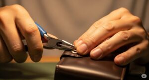 第二に、工具で財布本体の革を傷つけてしまう可能性です。特に、ドライバーの先端が滑ってしまうと、深い傷が残ることも考えられます。