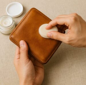月に1回くらい、革用の保革クリーム(デリケートクリームなど)で油分を補給してあげましょう。革の乾燥やひび割れを防ぎ、艶を出してくれます。